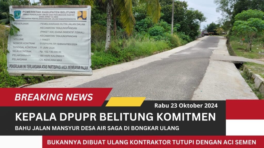 Secara padangannya, pengerjaan bahu jalan yang berada dijalan Mansyur, Desa Air Saga, Kabupaten Belitung tersebut diduga kurang layak bahkan menurut dugaannya, komposisi pada mutu beton patut dipertanyakan.