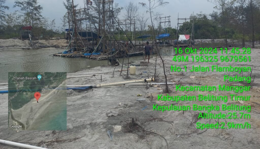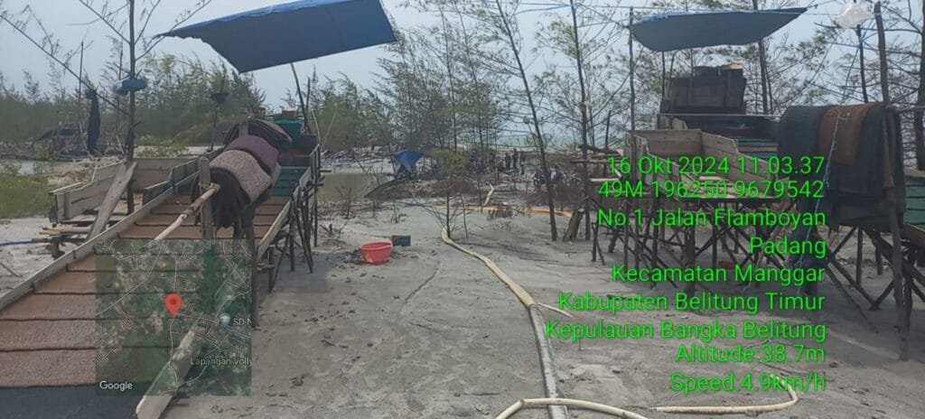 Head-linenews, Belitung – Belasan set alat tambang babat kawasan pesisir pantai Mirang, Desa Padang, Kecamatan Manggar, Kabupaten Belutung Timur.