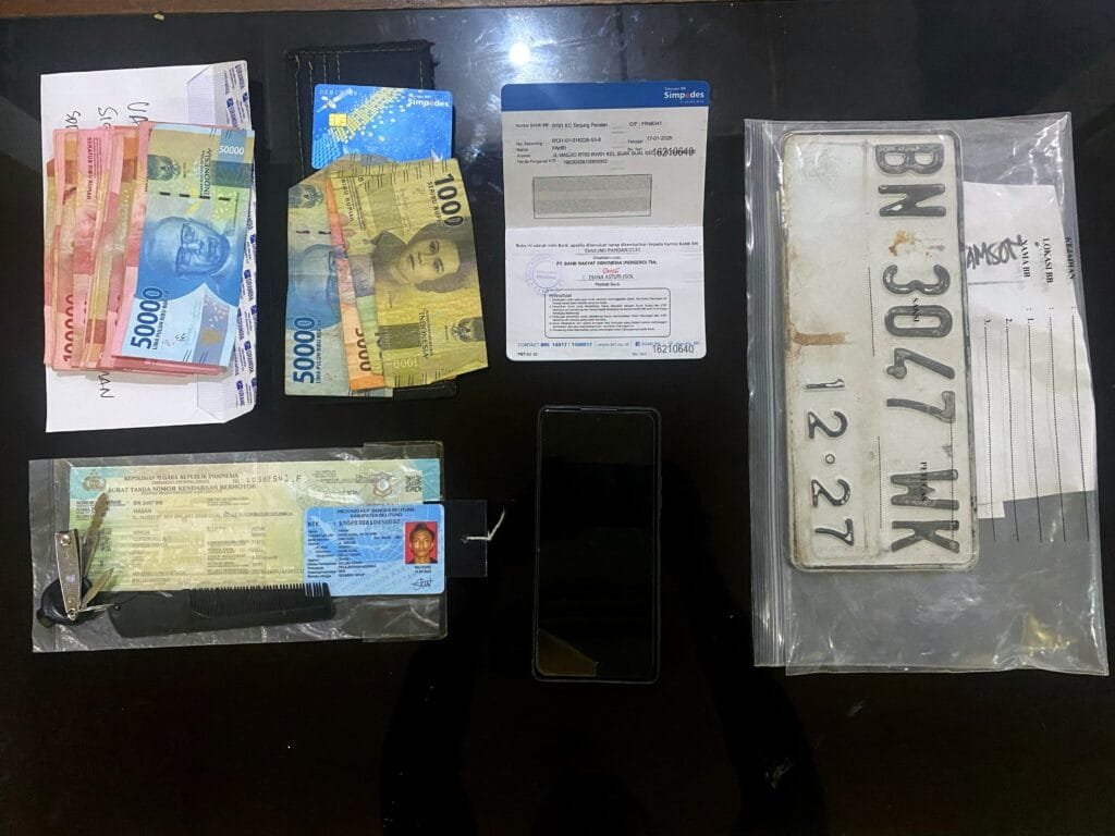 Selain itu, pelaku juga mengambil ponsel Redmi 12 milik korban yang berisi aplikasi DANA dengan nomor terdaftar atas nama Nelda Wati. Pelaku kemudian mengubah kata sandi aplikasi tersebut dan melakukan transaksi QRIS sebesar Rp 1.750.500,- ke akun atas nama Gemilang Chakra pada 15 Februari 2025 pukul 03.20 WIB. Setelah menyelesaikan transaksi, pelaku mengembalikan ponsel tersebut ke tempat semula.