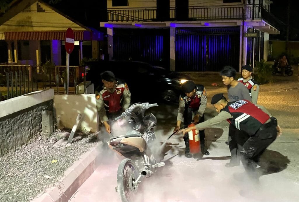Head-linenews.com, Belitung – Reaksi cepat anggota Satuan Samapta Polres Belitung dalam menangani kebakaran sepeda motor di SPBU Kemuning, Jalan Melati, Kelurahan Tanjung Pendam, Kecamatan Tanjungpandan, Belitung pada, Selasa (04/02/2025) patut diapresiasi.