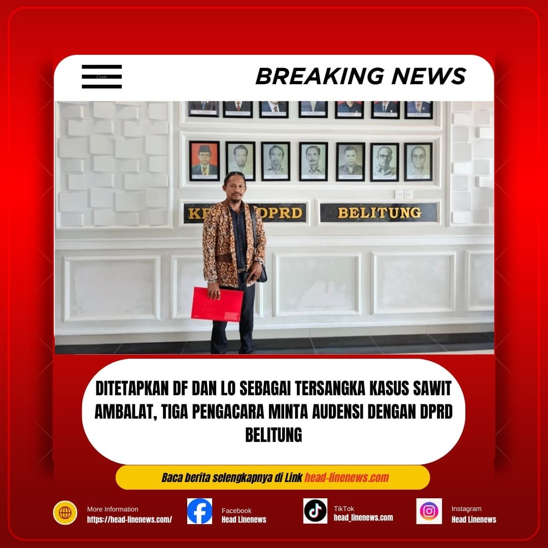 Berita | • 15 Januari 2025 • Ditetapkan DF dan LO Sebagai Tersangka Kasus Sawit Ambalat, Tiga Pengacara Minta Audensi Dengan DPRD Belitung Head-linenews.com, Belitung – Ditetapkannya DF dan LO sebagai tersangka dalam kasus permasalahan lahan sawit di...