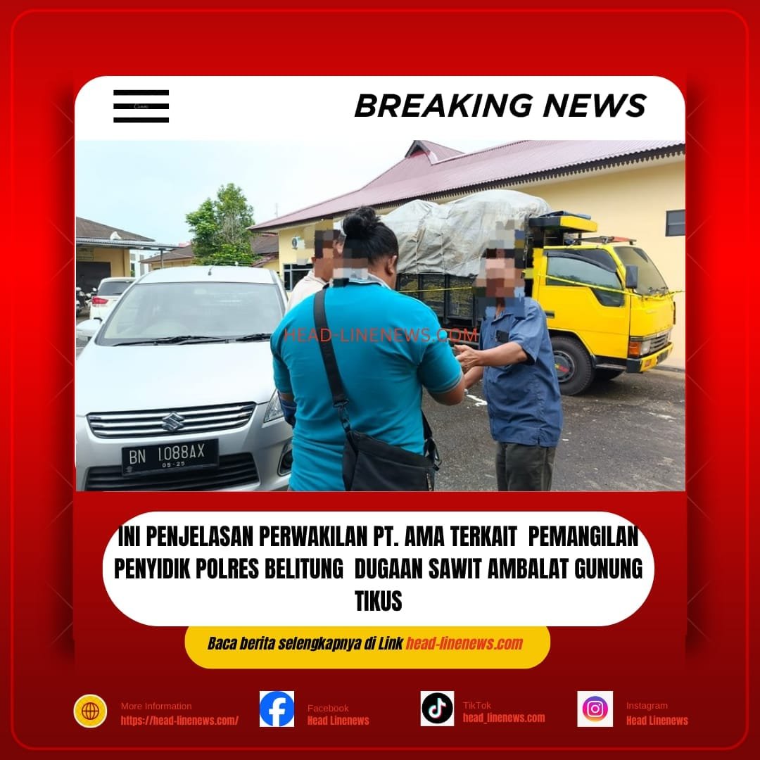 Berita | • 20 Januari 2025 • Ini Penjelasan Perwakilan PT. AMA Terkait Pemangilan Penyidik Polres Belitung Dugaan Sawit Ambalat Gunung Tikus Head-linenews.com, Belitung – Perwakilan dari PT Argo Makmur Abadi (PT AMA) diduga telah dimintai keterangan...